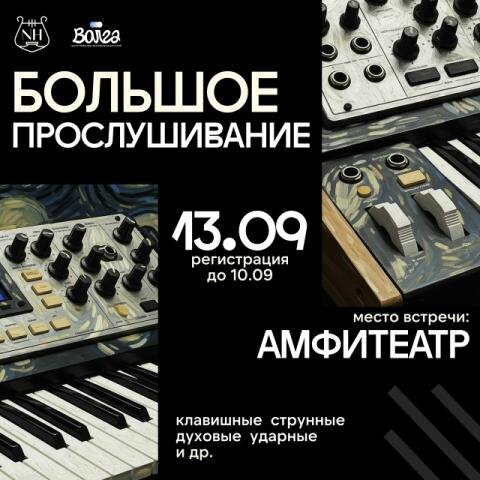 Музыкальный проект «NH» приглашает молодых и талантливых инструменталистов. Как сообщили РИАЦ в Центре развития креативных индустрий «Волга», первое прослушивание для участия в команде, создающей различные музыкальные номера во всевозможных стилях и жанрах, устроят 13 сентября 2025 года. Организаторы на площадке Амфитеатра ждут клавишников, скрипачей, барабанщиков, домристов, саксофонистов и даже гусляров. Главное – желание творить, выступать и трудиться вместе с единомышленниками. Точное время пока не указано. Но музыкантов просят зарегистрироваться по ссылке. Знак информационной продукции производителем не присвоен.