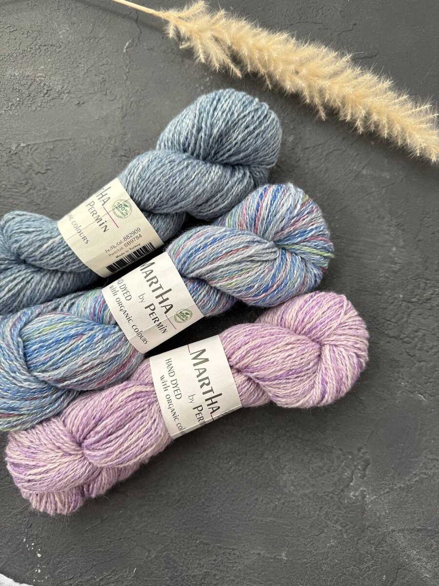 Хотели бы еще показать пряжу, которая классно подойдет и для маленького шарфика, и даже для косынки. Это Martha Permin. Она сочетает в себе хлопок и меринос, причем хлопок идет с неравномерной курткой. Как итог - пряжа имеет неоднородную фактуру, которая красиво смотрится в полотне.
