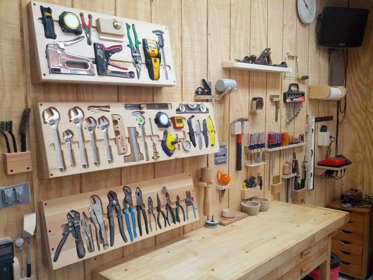 Это самое эффективное решение для хранения инструмента «под рукой». Вешается на стену над верстаком.