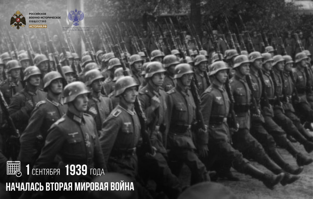 В этот день нацистская Германия напала на Польшу. Формальным поводом послужила Глейвицкая провокация, которая была организована самими немцами по указанию Адольфа Гитлера. Сотрудники СС, переодетые в польскую военную форму, напали на немецкую радиостанцию и передали в эфир антигерманские заявления. Через два года после начала войны, 22 июня 1941-го, нацисты напали на территорию Советского Союза. Красная армия смогла переломить ход боевых действий и сыграть решающую роль в разгроме Германии. Вторая мировая война же продолжалась до 2 сентября 1945 года и закончилась капитуляцией Японии. #памятныедаты_ИсторияРФ