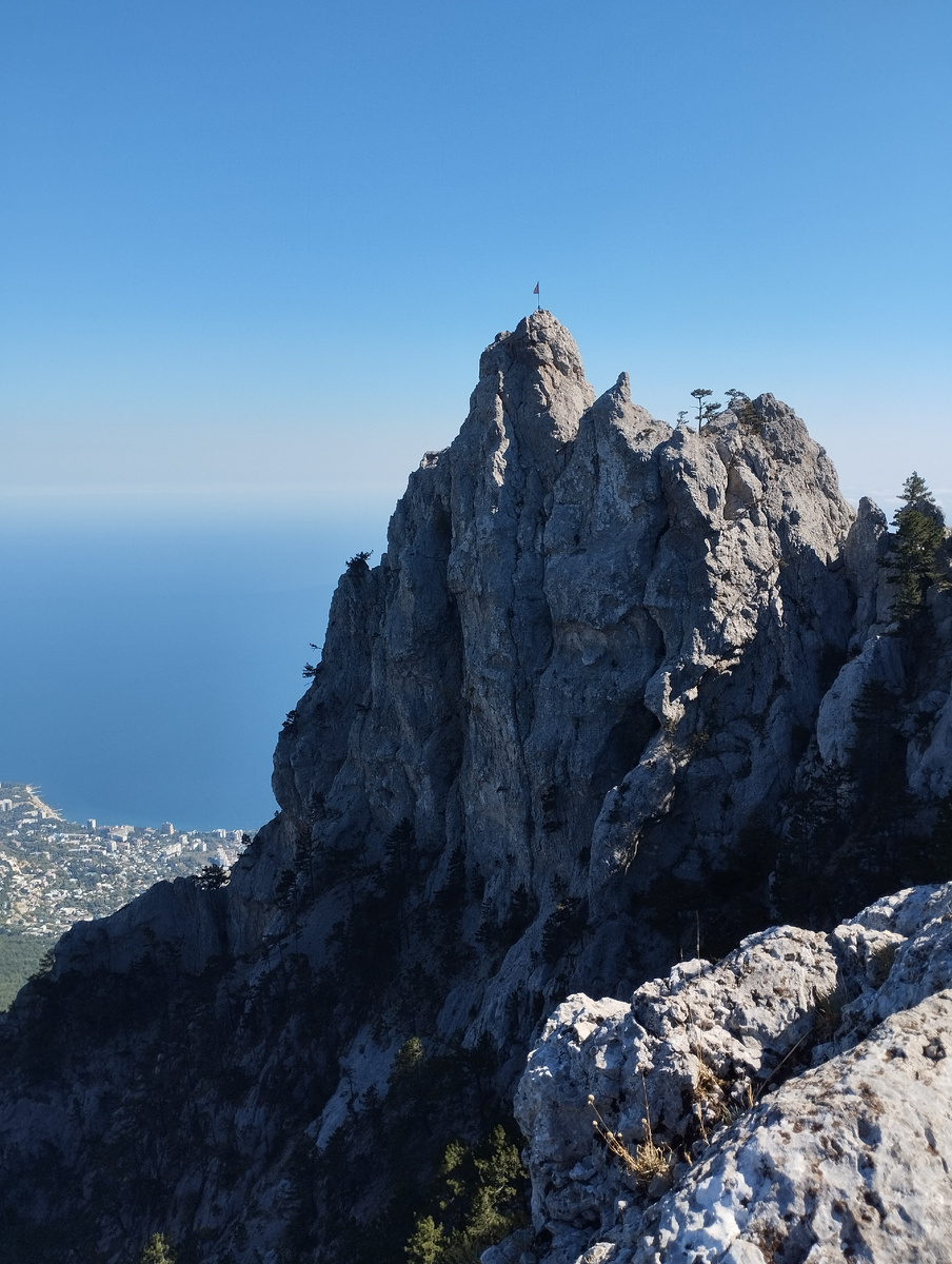 Побывать в Крыму и не подняться на вершину Ай-Петри? Ну, это как-то не комильфо. Тем более, что сейчас я совсем рядом с ней в Алупке и смотрю на неё каждый день с балкона своего номера в отеле. Точнее, вид у меня не только на грандиозную гору, но и на реконструируемый храм девятнадцатого века, о котором ещё расскажу чуть позже, а также на Воронцовский парк и море. Вот так три в одном. Да, самая ближайшая ко мне канатная дорога находится в Мисхоре. Но она не работает давно. По какой причине? Как обычно, споры хозяйствующих субъектов. Вторая канатка в Гаспре. До станции легко доехать маршруткой с автостанции в Алупке. К слову, маршрутки здесь, к моему крайнему удивлению, ходят по графику. И в Яндекс навигаторе можно увидеть, как они подъезжают. А проезд легко оплачивается банковской картой или смартфоном, как в моём случае. Короче, подъезжаю, выхожу как раз напротив станции канатной дороги и здесь выясняется, что и она... не работает. Об этом сообщает любезный молодой человек, сразу ж