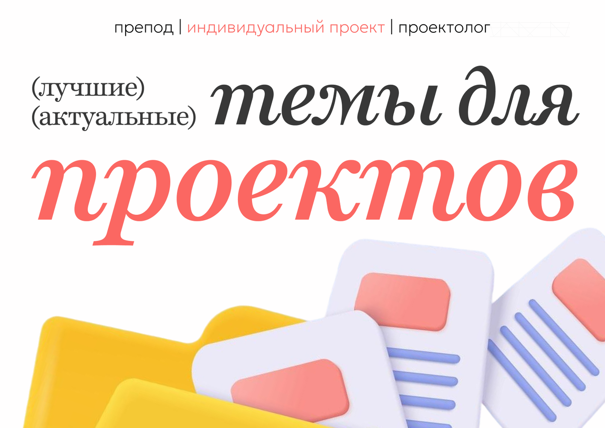 Сегодня мы представляем вам подборку топовых тем для индивидуальных проектов, составленную на основе анализа опыта педагогов из разных школ и колледжей России. Эти направления прошли «проверку временем» — они востребованы в учебных программах, соответствуют требованиям ФГОС и активно используются в рамках дисциплины «Проектная деятельность».