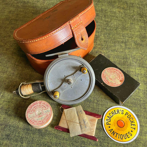 Тас амая «Illingworth № 1 casting thread line reel». У нее деревянная шпуля, двойной проволочный лесоукладыватель, две ручки из слоновой кости.