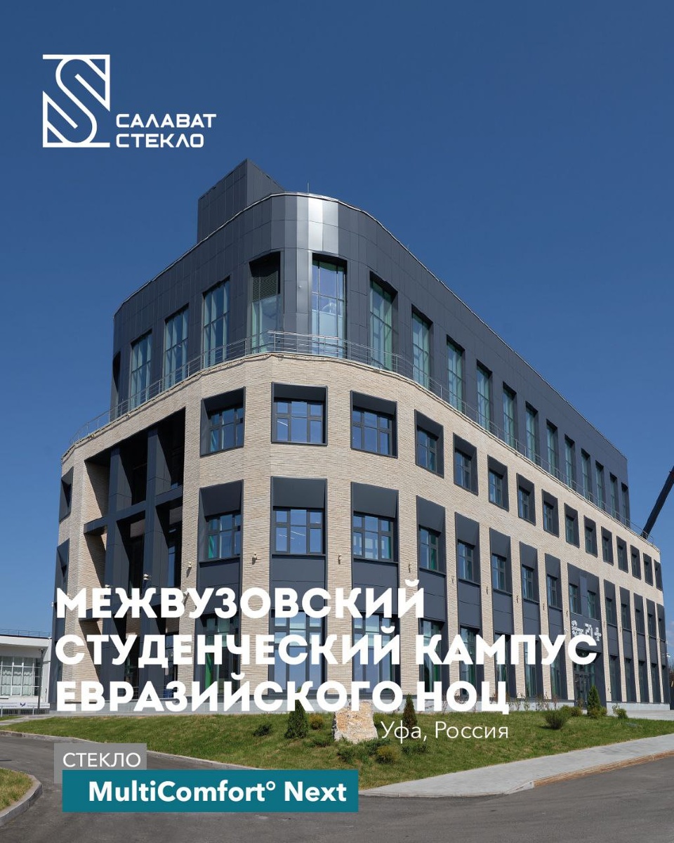 🎓 Научно-образовательный центр мирового уровня Межвузовский студенческий кампус Евразийского НОЦ – Центр интеллектуальной геномики Уфимского федерального исследовательского центра Российской академии наук. Помимо исследовательских лабораторий, здесь размещена крупнейшая в стране школа цифровых технологий «Школа 21» от Сбера, которая специализируется на подготовке высококвалифицированных IT-специалистов. Архитектурная концепция представляет собой четырехэтажное прямоугольное здание площадью 5,5 тысяч кв м. со скругленными углами. Фасад оформлен с использованием композиционных материалов. Внешняя стена первых трех этажей имеет витражные проемы. Четвертый этаж спроектирован меньше остальных по площади и имеет витражные ограждения, что внешне облегчает конструкцию. 💎 Сейчас всё чаще наблюдается тенденция увеличения светопрозрачных конструкций в остеклении учебных заведений. Это позволяет пропускать в помещение больше естественного дневного свет, что положительно сказывается на учебно