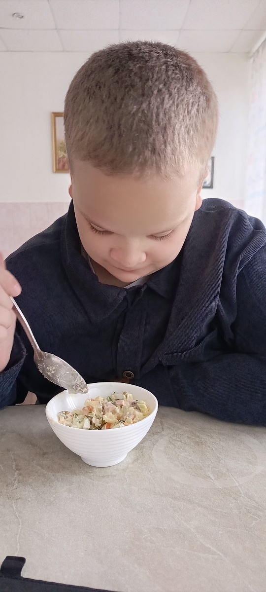 Что ж, раз такое дело, столовая отвечает на наш отчаянный призыв праздничным меню: салат оливье (щедро заправленный майонезом, как последний привет от беззаботного лета), пакетированный сок и шоколадка (стандартный набор выживания для первоклашек).