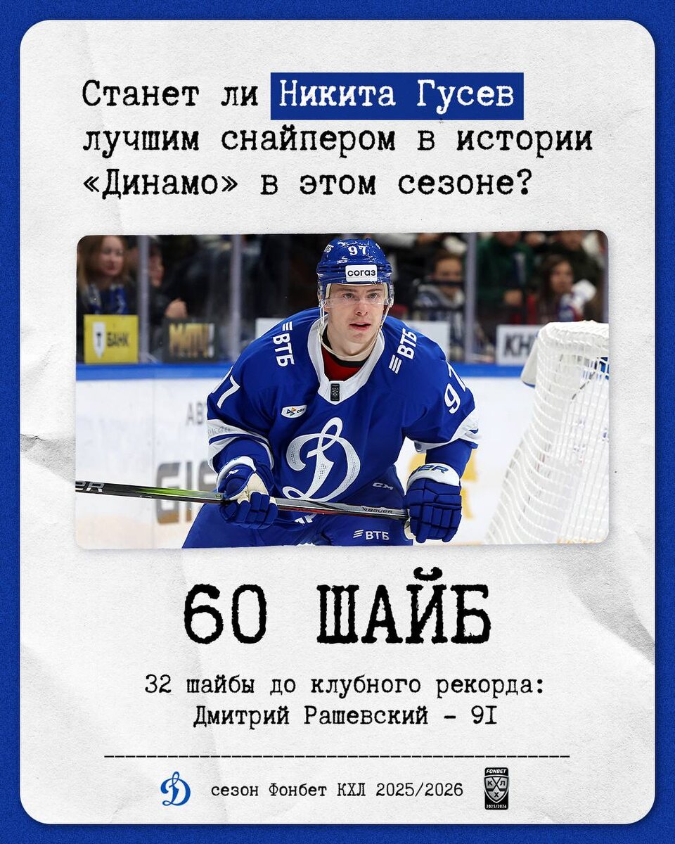 🔵 В прошлом сезоне Никита Гусев записал на свой результативный счет 34 шайбы — получится ли у 97-го номера выдержать планку и занять свое место на клубной вершине? KHL.ru рассказывает о рекордсменах московского «Динамо» в КХЛ.