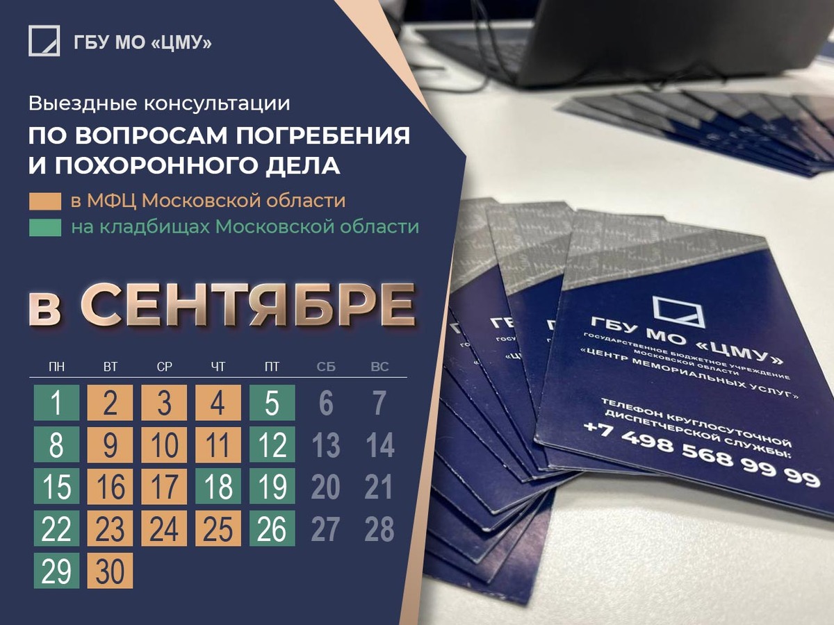 Выездные консультации на кладбищах и в МФЦ Подмосковья в сентябре