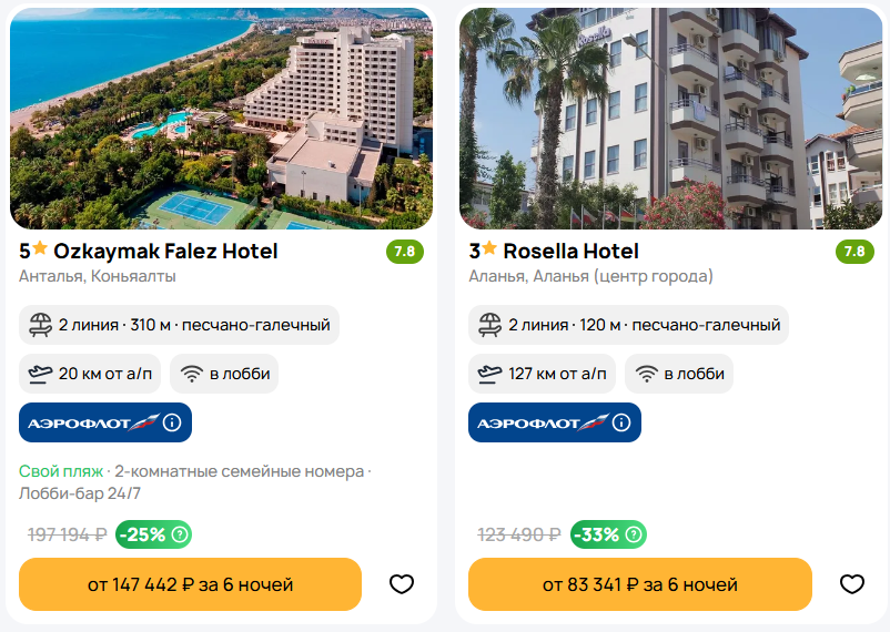 🔥 Туры в Турцию "всё включено" из Санкт-Петербурга на 6-17 ночей🔥 Парочка выгодных вариантов: Тур в отель 3⭐️Rosella Hotel, до пляжа 120 м, Аланья, от 6 ночей, всё включено, прямой чартерный. Вылет 11 сентября, от 41671 руб/чел Забронировать: https://checkintime.ru/sl23 Тур в отель 4⭐️Hedef Kleopatra Hotel, до пляжа 190 м, Аланья, от 6 ночей, всё включено, прямой чартерный. Вылет 11 сентября, от 62556 руб/чел Забронировать: https://checkintime.ru/aekh Тур в отель 5⭐️Ozkaymak Falez Hotel, до пляжа 310 м, Анталья, от 6 ночей, ультра всё включено, прямой чартерный. Вылет 10 сентября, от 73721 руб/чел Забронировать: https://checkintime.ru/r0hy Все предложения: https://checkintime.ru/az7n ⚠️Цены на момент публикации и указаны на одного человека с перелетом и проживанием. Переходя по ссылке цена отобразиться на 2-х человек 🏖 Поиск туров | ✈️Авиабилеты