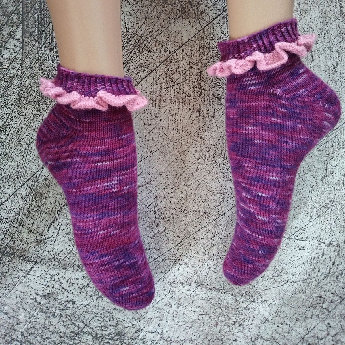 Готовлю описание на завтра для этих носочков. Это как раз те, которые вязались в жару, и второй носок "забыл" связаться и искался по всем шкафам🤣 Чем интересны? Пятка Стронг от мыска плюс интересный рюш. Я когда раньше вязала носки от мыска, всегда впадала в ступор - когда начинать вязание клина? Сколько см от начала мыска. Удобная формула - 65% - стопа с мыском, 35% - клин и пятка. Но есть и хорошая табличка "Длина носка от набора до начала клина (размер/длина в см)": 24/25 - 8-8,5 26/27 - 9-9,5 28/29 - 10,5 30/31 - 12 32/33 - 13 34/35 - 14 36/37 - 14,5-15 38/39 - 15,5-16 40/41 - 16,5-17 42/43 - 17,5-18 44/45 - 18,5-19 46-47 - 19,5-20 Кому актуально, забирайте🤗👆