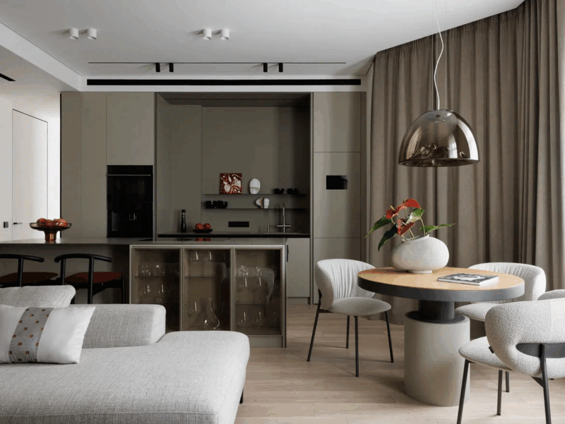 семейные ужины и проводить кулинарные мастер-классы Благодаря перепланировке и сохранению высоты потолков, помещение стало визуально шире. Мебель, текстиль, декор, предметы искусства придают пространству глубину. Площадь проекта 104 кв. м и включает всё для комфортной жизни семьи. Читать статью далее на сайте журнала МВ