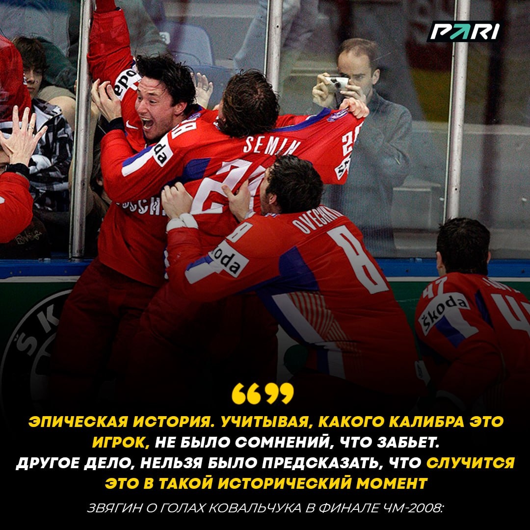 🔥🇷🇺 Сергей Звягин оценил решающие голы Ильи Ковальчука в финале чемпионата мира-2008. 🚨 За первые семь матчей турнира Ковальчук не забросил ни одной шайбы. В решающей игре против Канады (5:4 ОТ) он сравнял счет, переведя матч в овертайм, а затем забил победный гол.