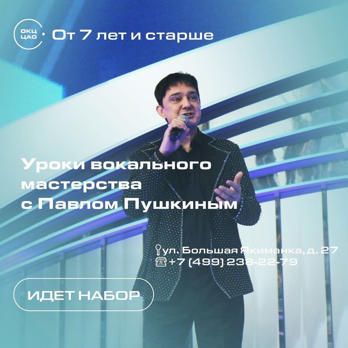 ⚡️Приглашаем в студию вокального мастерства с Павлом Пушкиным. Павел Юрьевич Пушкин - солист Академического ансамбля Росгвардии РФ, участник первого сезона телепроекта «Голос» на Первом канале, Заслуженный артист республики Северная Осетия-Алания. На занятиях вокала участники постигают секреты профессиональных певцов, учатся правильному дыханию и звуковедению. Развивая свою музыкальность и воображение, погружаются в волшебный мир актерского мастерства, создавая тот или иной образ при исполнении песен.🎤 Пройдя программу курса, вы: 🎶освоите вокальную технику 🎶разовьете слух и музыкальность 🎶найдете свой уникальный стиль и репертуар 🎶улучшите сценическую уверенность и навыки исполнения. Уроки вокала подходят как для начинающих, так и для более опытных певцов, желающих улучшить свои навыки. Курс будет полезен всем, кто хочет развить свой голос, научиться петь любимые песни или подготовиться к выступлениям. 💰Занятия платные 📍ул. Большая Якиманка, д. 27 📞+7 (499) 238-22-79