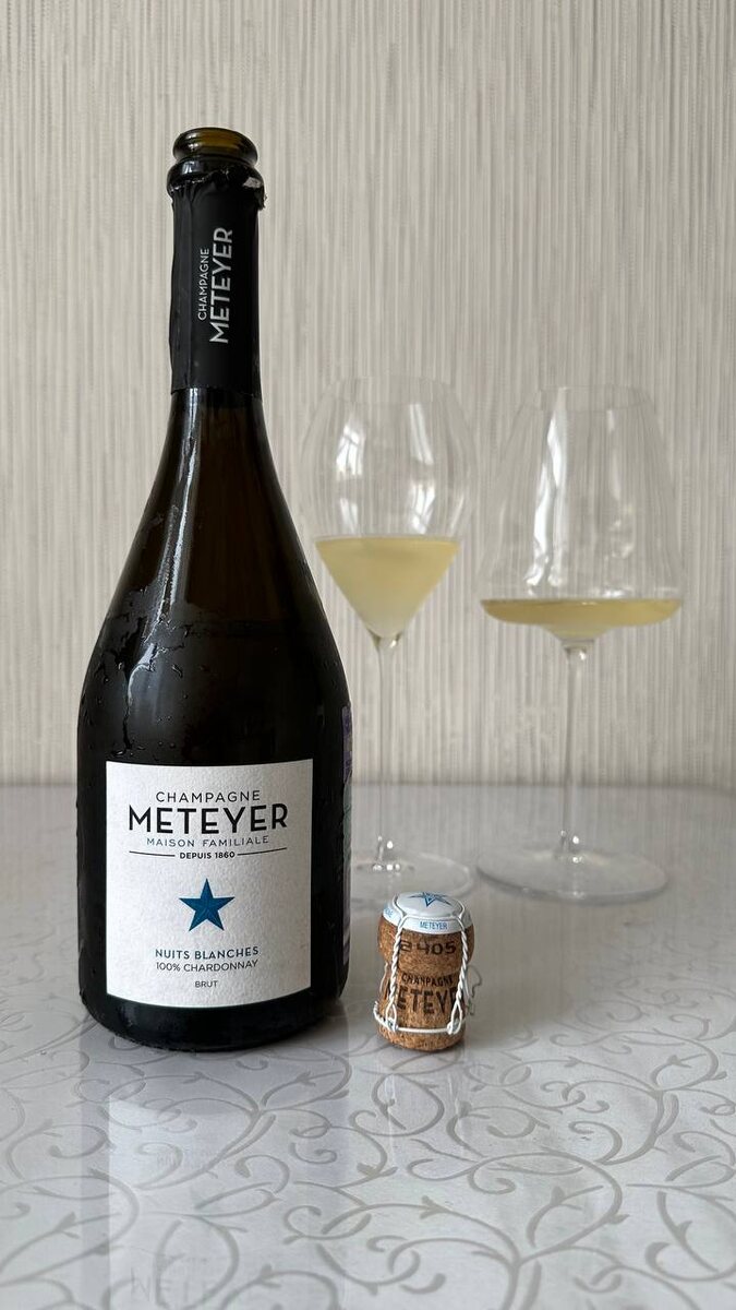 Champagne Meteyer nuits blanches brut 1 сентября - хоть и понедельник, но точно праздник! Поэтому Элу продолжит рассказывать о шампанском... "Долина Марны, Шампань, Франция Миллезим, 2019 100% Шардоне Глинистые и известняковые почвы. Что интересно, по английски известняк - limestone. Так вот откуда вкус лайма и минералов. Открытие дня. Шампанский Дом здесь рекольтант-манипулянт - производят вина из собственного винограда. В настоящее время Домом управляет шестое поколение виноделов, а началось все с 1860-х годов с одного гектара виноградников. К вину. Аромат свежий, не холодный, объемный. В начале тропические фрукты. Далее открываются минералы и лайм. А поболтав так вообще парфюмерия. Далее зеленое яблоко. И это все за 7 минут. Слушать ароматику хочется долго, но и вкус тоже надо почувствовать. А он округлый, довольно чистый: недозрелые и, поэтому, кисленькие фрукты. Через 35 минут после открытия - табачная горчинка во вкусе. Легкость пития - 3/5. С датами здесь интересно. На ФР кон