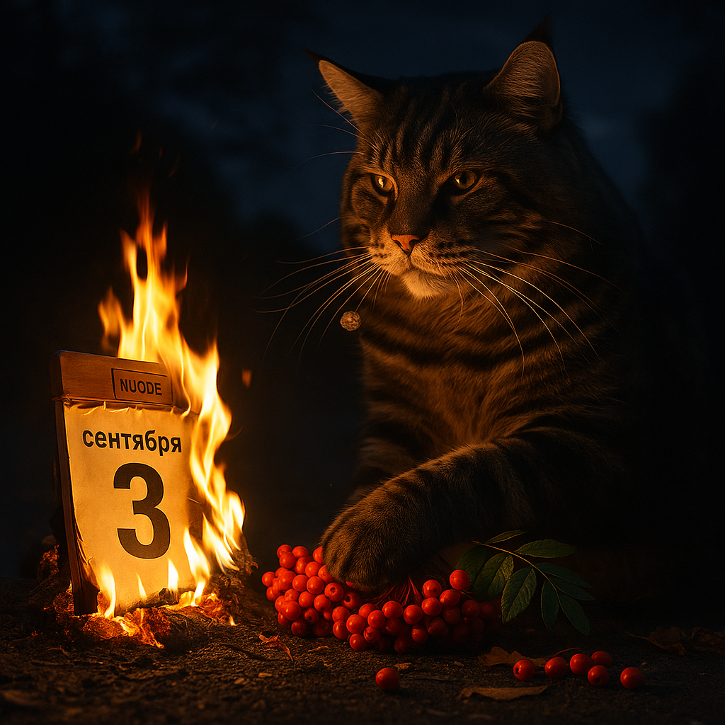 3 сентября — именно такой день. Каждый год он возвращается, как осенний сквозняк в открытое окно. Кто-то смеётся, кто-то страдает, кто-то напевает строчку про календарь и костры рябин. И тут не важно, любите вы Шуфутинского или нет — эта дата стала культурным мемом сама по себе. Коты наблюдают за этим спектаклем с лёгкой ухмылкой. Нам не нужно объяснять, почему именно сегодня в вашей ленте море одинаковых шуток и картинок. Мы просто выпускаем свои — и всё становится ясно без слов. 🔥 Куня: