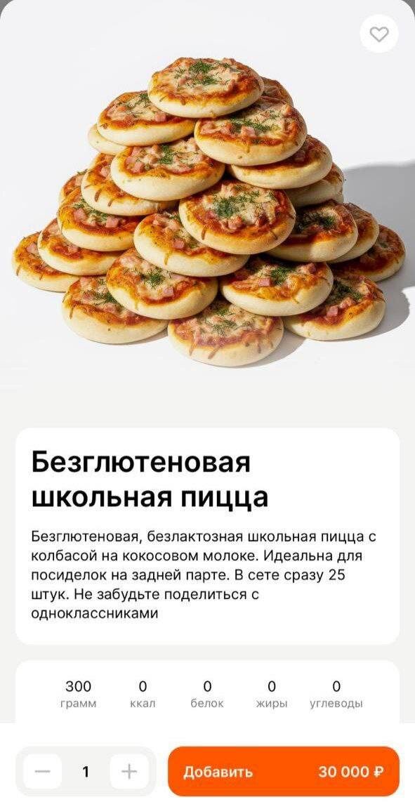 Ору, Много Лосося выпустили бабл-компот, манку с комочками на лавандовом и безглютеновую школьную пиццу! Цена по 30 тысяч (!) рублей за 25 штук каждого блюда (продается сразу на весь класс). Эх, ностальгия в глаз попала 😢