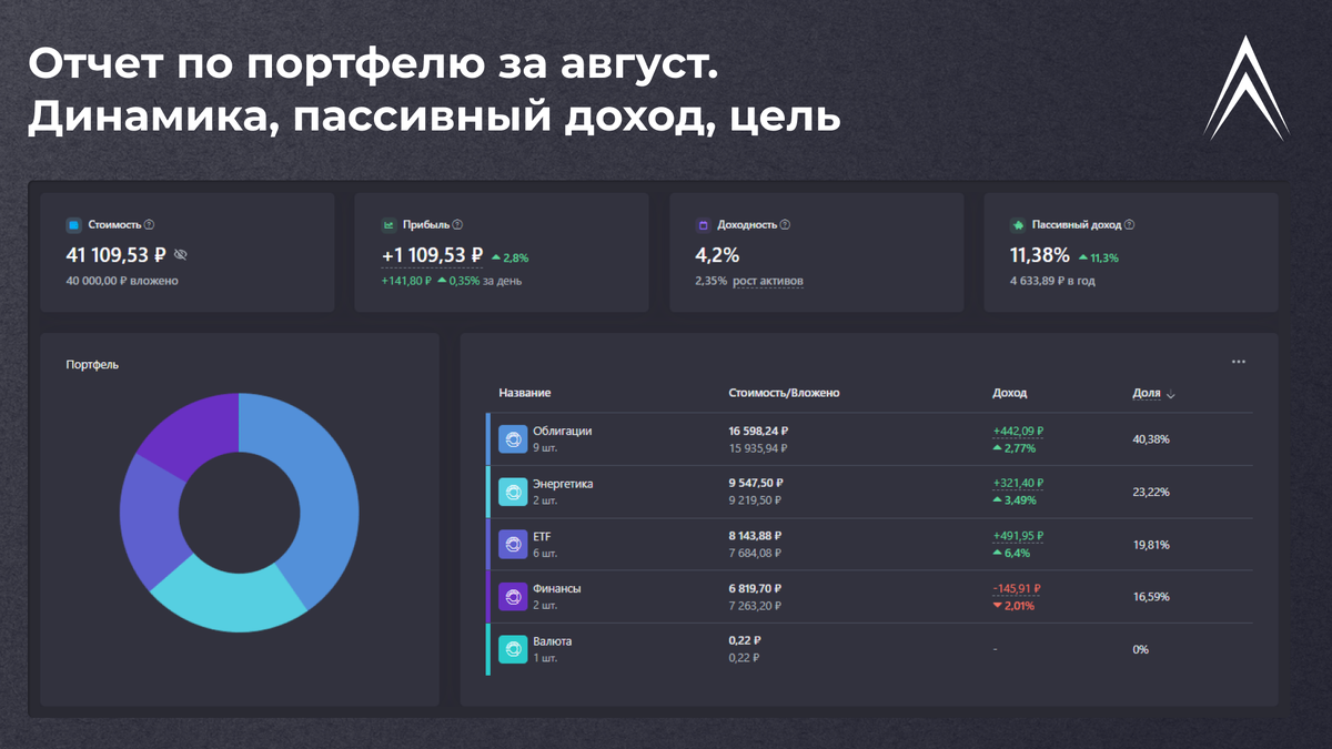 Отчет по портфелю за август. Динамика, пассивный доход, цель