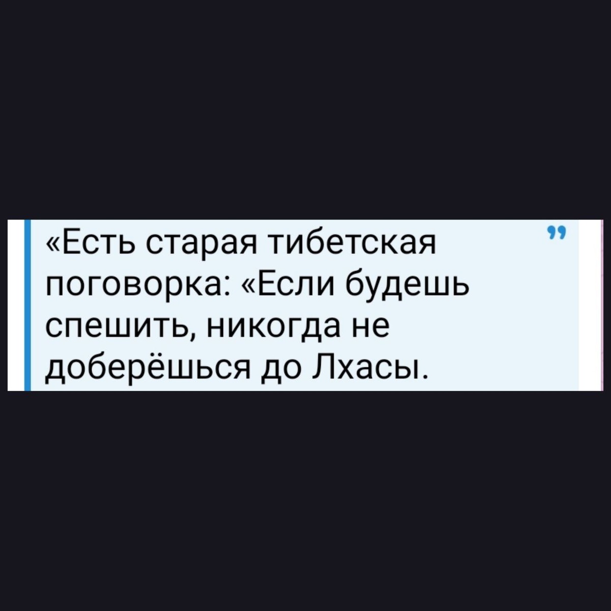 "Если будешь спешить, никогда не доберешься до Лхасы