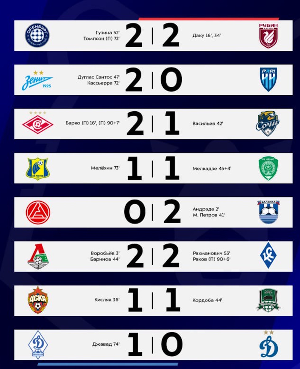 7 тур прогремел, и выжившие расползлись по сборным. В медальной зоне из-за разницы мячей ВНЕЗАПНО оказалась калининградская "Балтика", на крутом повороте обойдя подававший всё что можно "Локомотив". Шутки про чемпионскую поступь - не шутки, потому что если "Зенит" в следующем туре выиграет, то сможет лишь догнать. Лидерство маленькой, но гордой "Балтики" в чемпионате, где есть восьмизначные по стоимости в миллионах евро команды, смотрится достаточно абсурдно, так что всё в порядке.