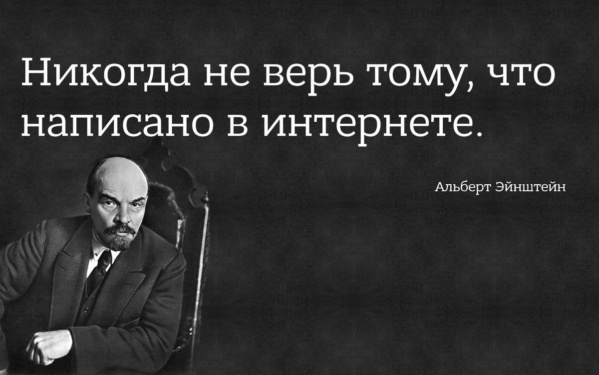 Как писал В.И. Ленин "проблема цитат в интернете в том, что люди безоговорочно верят в их подлинность". Думаю, нет ни одного человека, который, прочитав бы этот известную в сети шутку, хотя бы на секунду воспринял ее всерьез. А вот со многими другими высказываниями, циркулирующими в интернете, почему-то происходит прямо противоположное. Их часто и охотно цитируют, несмотря на то, что в реальности их "авторы" никогда ничего подобно не писали и не говорили. Давайте вспомним 10 самых ярких фейковых цитат, от которых никак не может избавиться российский сегмент интернета!