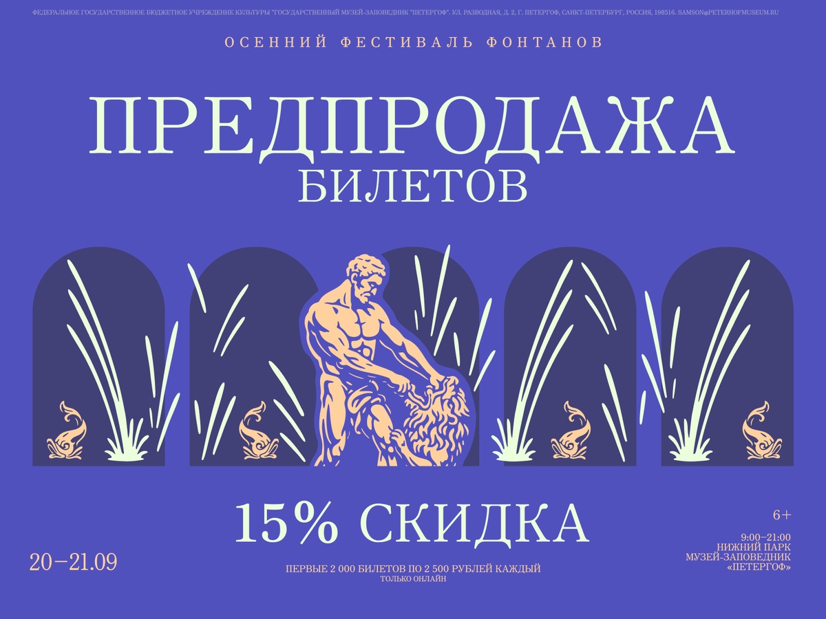 ☝️Сейчас онлайн-билеты можно купить со скидкой 15%, стоимость билета для всех категорий граждан со скидкой — 2500 рублей.