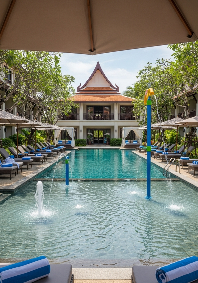 В отеле работает детский клуб с игровой зоной, PlayStation и разнообразными активностями. Шесть бассейнов включают специальный детский с горкой и игровой зоной. Особенно ценится близость к пляжу Патонг и многочисленным ресторанам в пешей доступности.