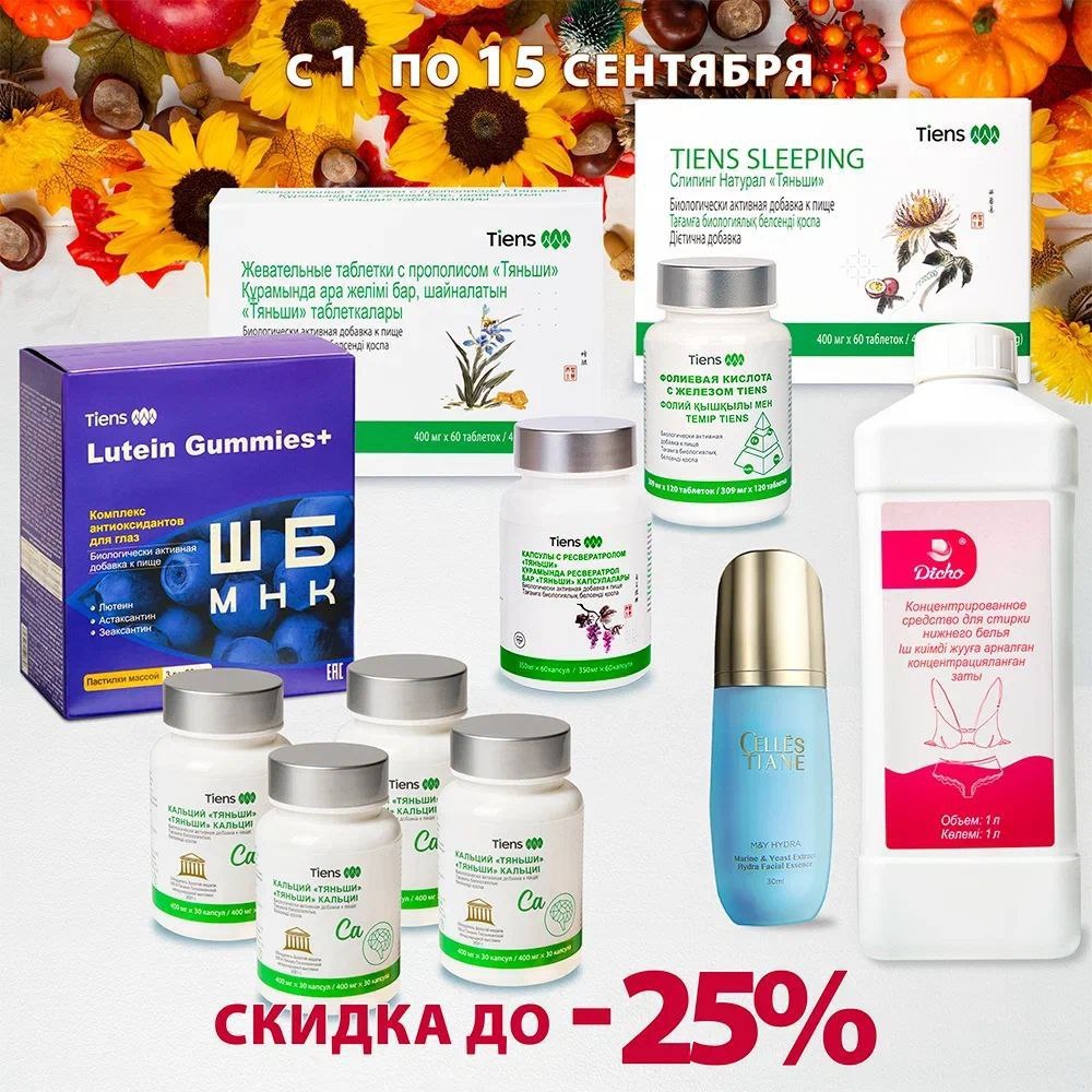 🎉 С 1 сентября по 15 сентября 2025 года — специальная акция от «Тяньши»! 🎉 Успейте приобрести продукты "Тяньши" со скидками до 25%! 🚀Действуйте сейчас — покупайте любимую продукцию выгодно!