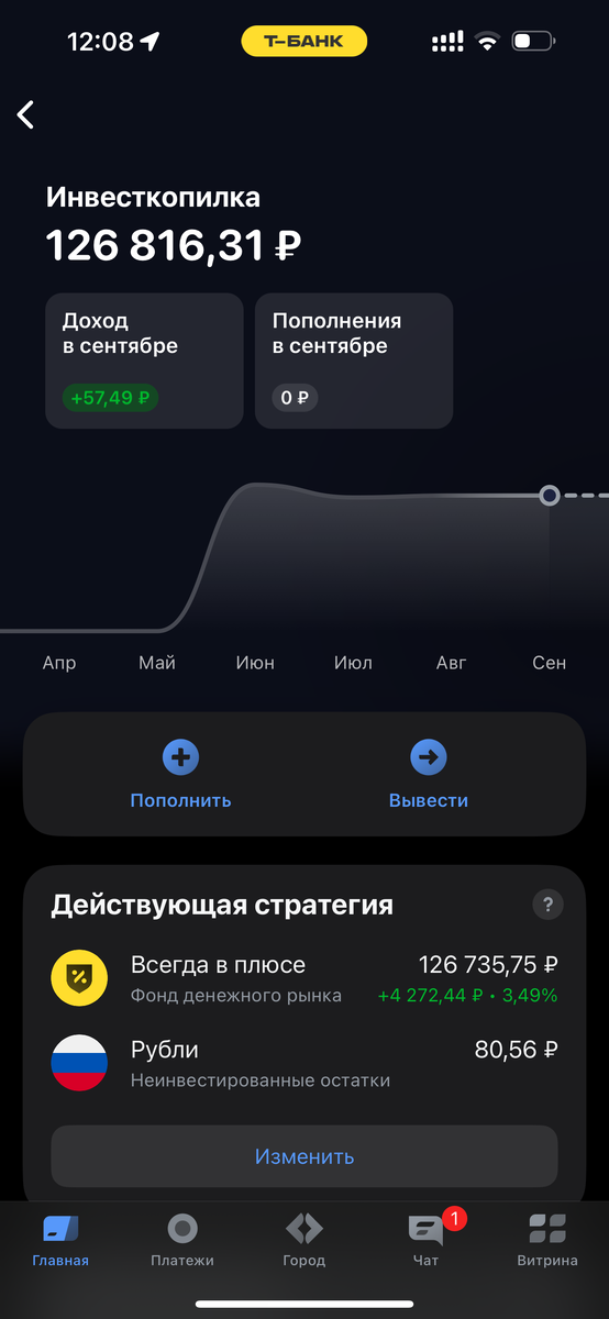 В последнее время все чаще слышу про Инвесткопилку от Т-Банка с заявленной доходностью «до 20% годовых». Решил проверить, насколько эти цифры соответствуют реальности. Взял 125 000 рублей, закинул их в копилку 1 августа и не трогал целый месяц — ни пополнений, ни выводов. Рассказываю, что вышло. Инвесткопилка — это автоматизированный инструмент для вложений в облигации и другие низкорисковые активы. Т-Банк обещает, что алгоритмы сами подбирают портфель, а вы получаете доходность «в районе 20%». Звучит заманчиво, но как это выглядит на практике? Чистая прибыль: