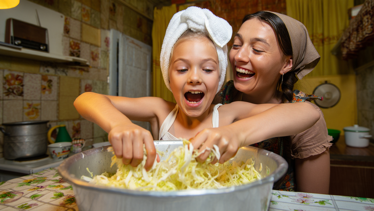 Капуста получилась неплохая, но не такая, как у мамы. Не хватало чего-то важного — того особенного вкуса детства, когда простая заготовка превращалась в праздник, когда кухня наполнялась смехом и музыкой, когда весь мир сужался до алюминиевого таза, в котором мы с мамой творили маленькое чудо.