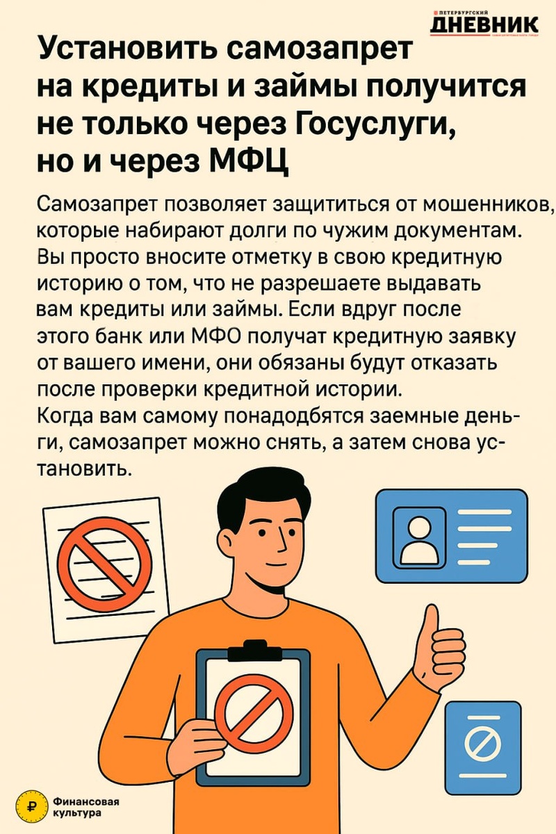 👍 Самозапреты, «вторая рука» и навязанные услуги: что нового для нас в начале осени? 1 сентября — не только День знаний, но и точка отсчета для множества вступивших в силу законов и правил. Сегодня вместе с порталом «Финансовая культура» мы расскажем о действительно полезных новшествах в сфере финансовой безопасности. Как еще удобнее оформить самозапрет? Как отписаться от навязанных услуг? Как защитить себя от влияния мошенников? Смотрите в наших карточках, подготовленных совместно с порталом Финансовая культура и Банком России Северо-Запад. Петербургский дневник