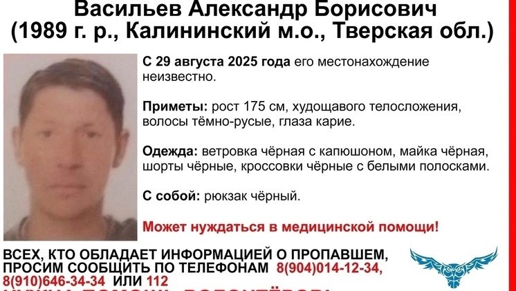 В поисках участвуют волонтеры ВПСО "Сова". Они просят сообщать любую информацию о его местонахождении по указанным в ориентировке номерам. Читайте также на ТИА: в Тверской области нашли живым пропавшего рыбака.