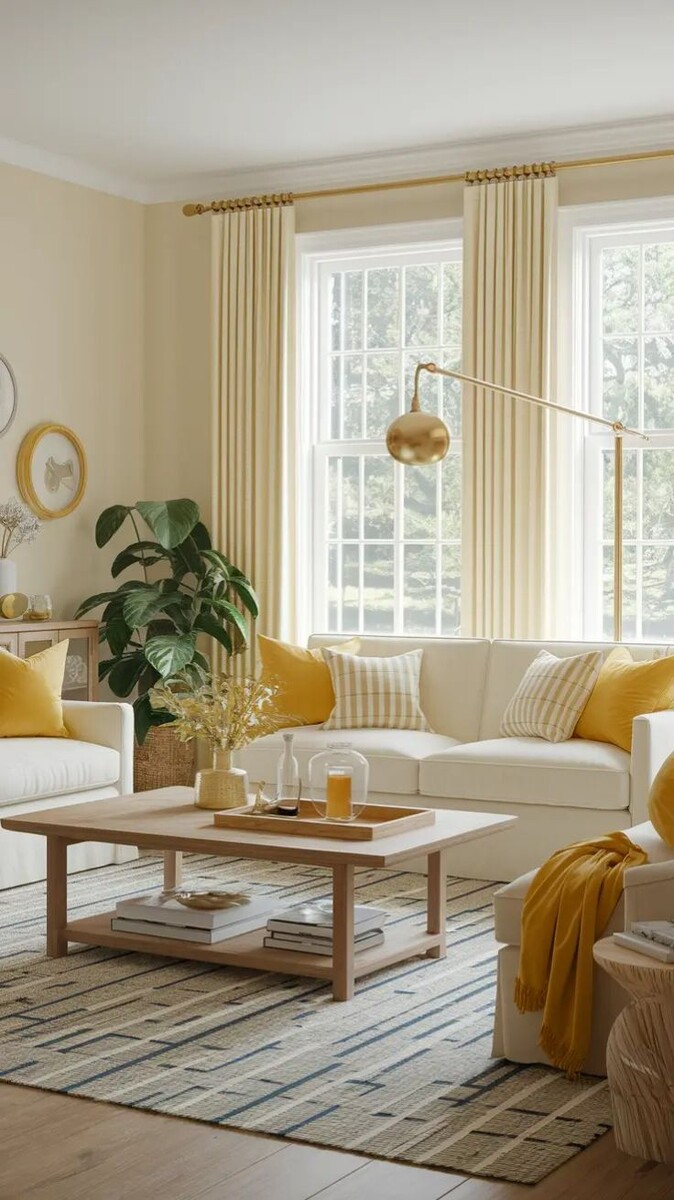 Главное — использовать его правильно, чтобы интерьер выглядел не ярмарочно, а стильно. Самая частая ошибка — красить стены целиком. В реальности обилие жёлтого утомляет. Он быстро теряет свой эффект и превращается в раздражитель. Лучше действовать точечно: кресло, пара подушек, торшер, абажур, картина с солнечными акцентами. Даже маленькое пятно жёлтого оживляет пространство, особенно в сером или бежевом интерьере. Рабочее правило: если сомневаетесь — добавьте один акцент, а не пять. Жёлтый бывает разным — от лимонного до мёдового.