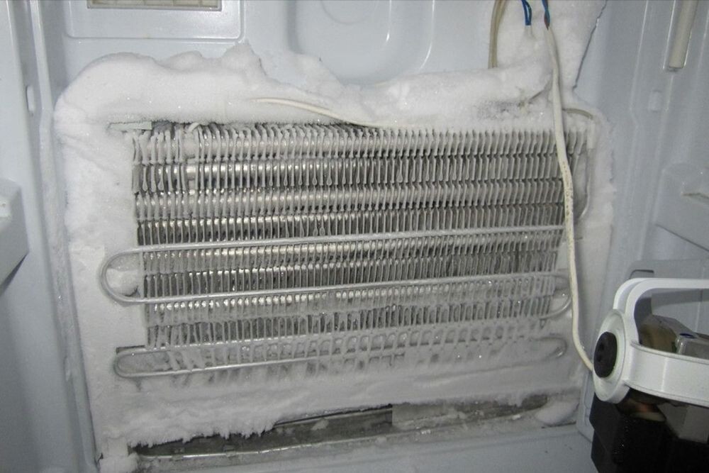 Возникает в моделях No Frost. Внешне проявляется обледенением испарителя, нарушением воздушной циркуляции и прекращением работы холодильной камеры. Возникает вследствие поломки таймера, датчика (дефростера), перегорания ТЭНа, дефектов плавкого предохранителя, нарушения работы модуля управления.