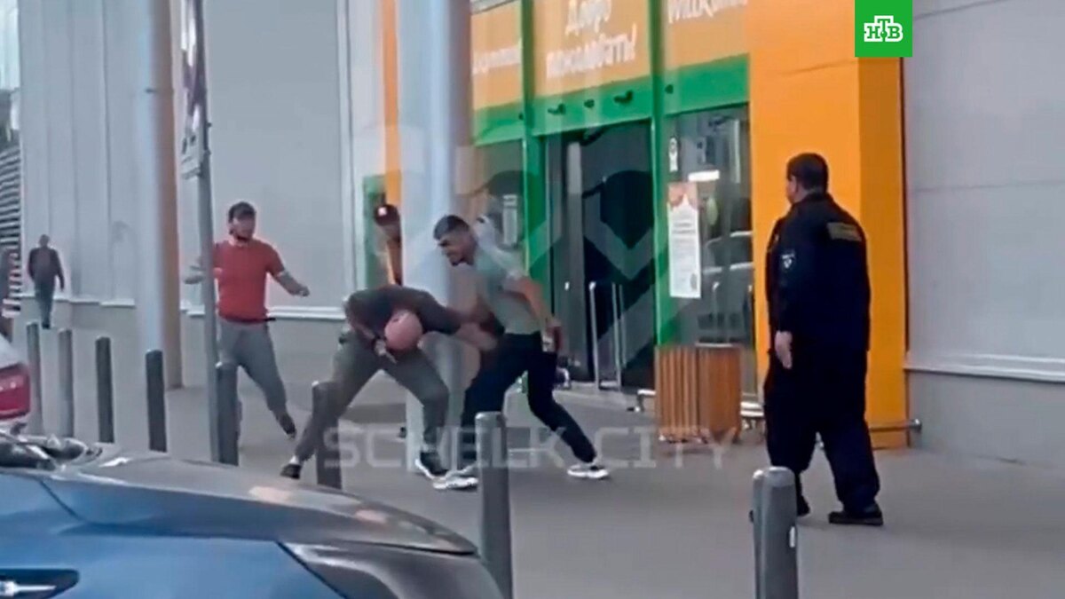 [ Смотреть видео на сайте НТВ ] В подмосковном Щёлково несколько мужчин напали на полицейского, который сделал им замечание. В соцсетях пишут, что полицейский в штатском увидел, как несколько мужчин ругаются с охранником торгового центра. Он подошел к ним, показал удостоверение и попросил успокоиться. В ответ на это мужчины набросились на него с кулаками. Полицейскому пришлось выстрелить в нападавших из травмата, но даже после этого они продолжили его избивать. Нападавшие скрылись, но вскоре один из них был задержан. Официальных комментариев от правоохранительных органов о случившемся пока не поступало. [ Смотреть видео на сайте НТВ ]