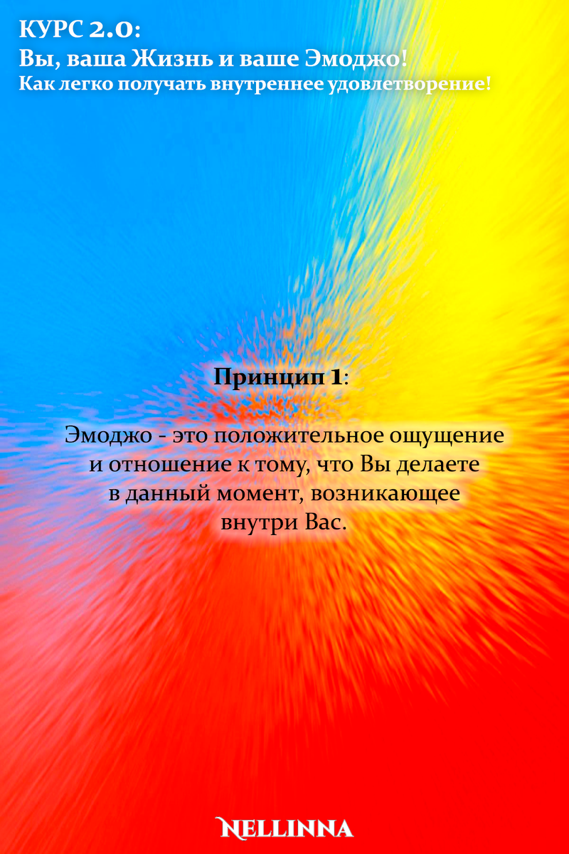 Принцип 1: Эмоджо - это положительное ощущение и отношение к тому, что Вы делаете в данный момент, возникающее внутри Вас. Чтобы не пропустить следующую публикацию – Подписывайтесь! И делитесь полезной и бесплатной информацией! #курс #тренинг #обучение #практикум