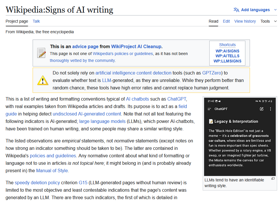 https://en.wikipedia.org/wiki/Wikipedia:Signs_of_AI_writing Резюме: