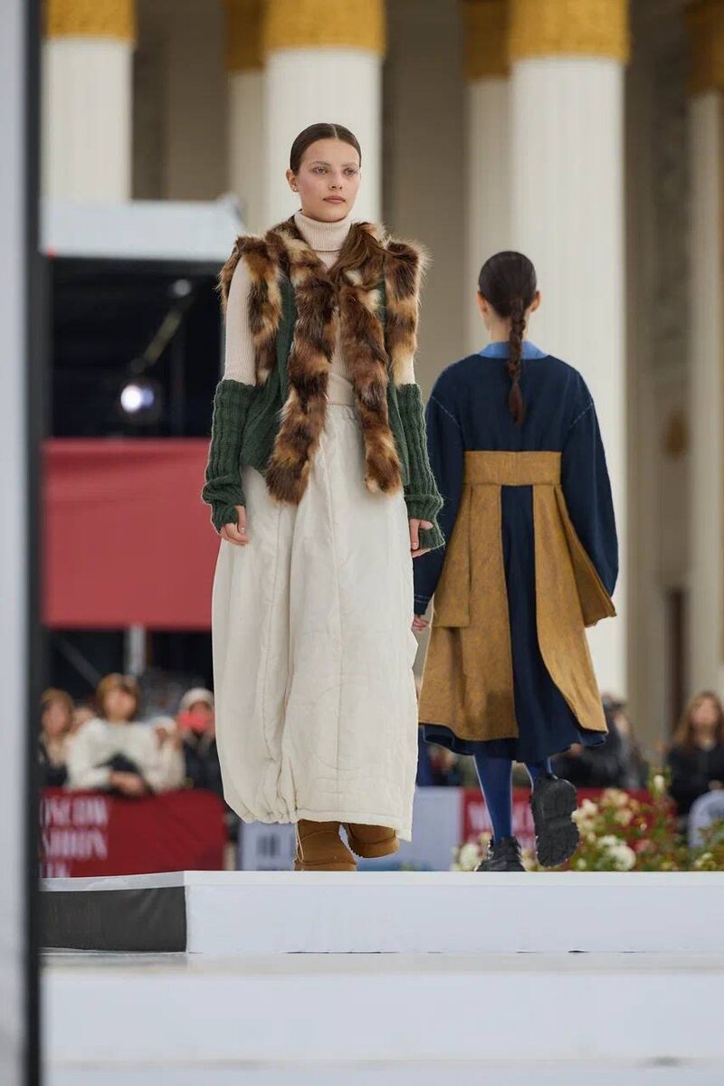 «Это сборная из 15 коллекций наших выпускников… очень много переработанных материалов, общий тренд — устойчивость», — говорит Ольга Ковалева, директор Института искусств РГУ им. Косыгина. И подчёркивает практический эффект площадки: «Без этой площадки такого масштаба студенты бы не смогли — здесь их увидят и заметят».