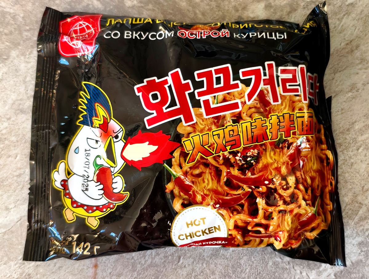 Пробую китайскую подделку лапши Buldak со вкусом острой курицы.