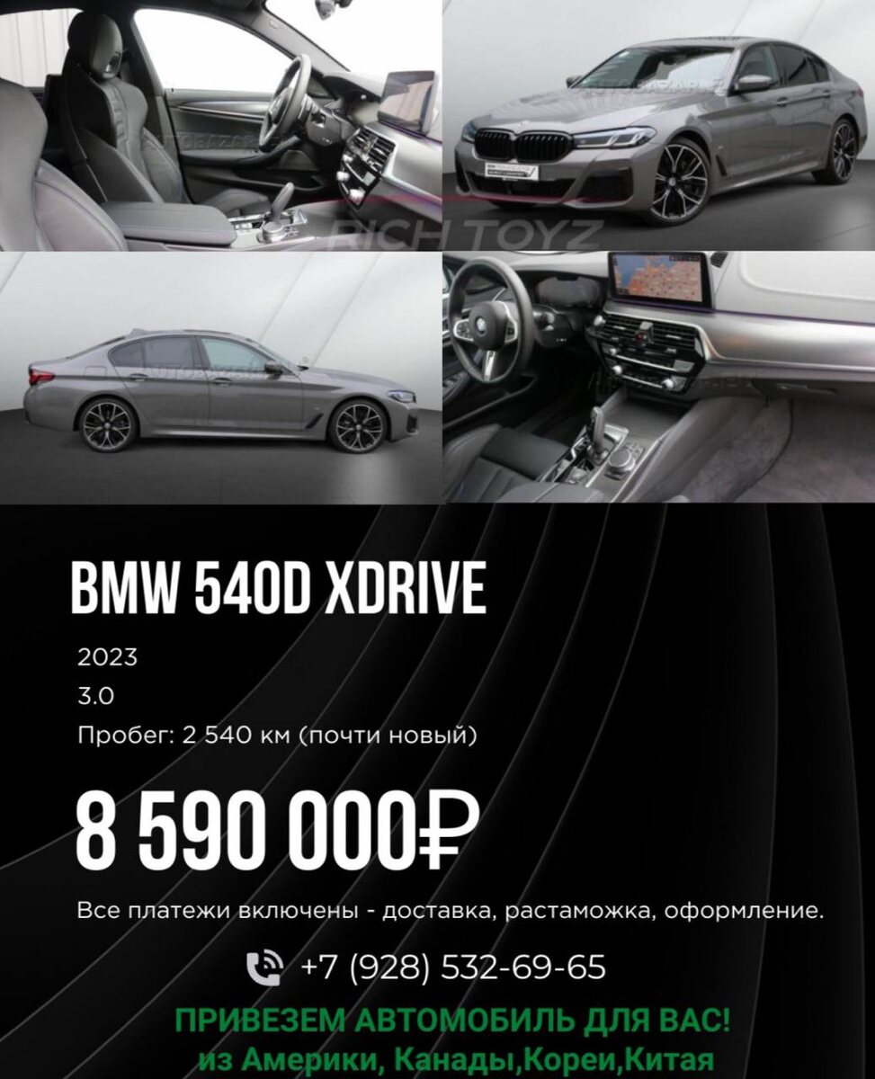 🗣Доступен к заказу — BMW 540d xDrive ⠀ Почти новый — всего 2 540 км пробега Выпуск — 2022 год Привод: полный (xDrive) Двигатель: 3.0 дизель, 340 л.с. Разгон до 100 км/ч — 4.8 сек ───────────── Цена под ключ — 8 590 000 ☺️ (Включено всё: покупка, доставка, растаможка, оформление) ⠀ Мощь, премиум и комфорт — в одной обёртке. Минимальный пробег. Без компромиссов. 💬Хочешь такой же? Пиши — подберём. 🚀 @RT_K1R 📞 +79285326965 RICH TOYZ | Москва, Ленинский проспект 123в
