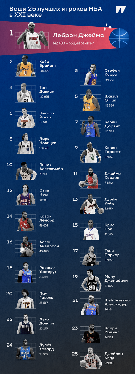 На Спортсе завершилось голосование за 25 лучших игроков НБА XXI века. Пора подвести его итоги и выделить победителей.