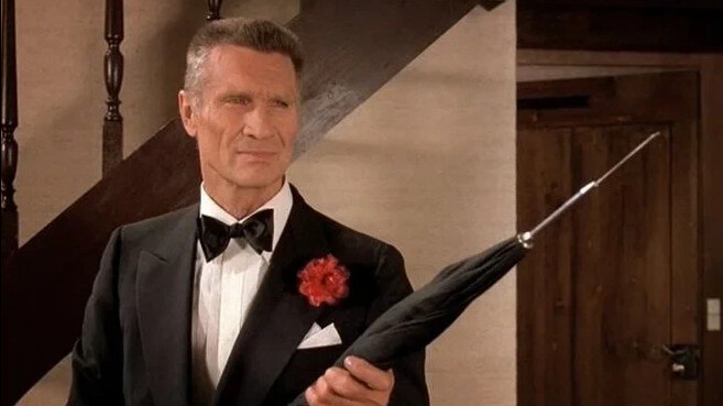 Укол зонтиком / Le coup du parapluie. Франция, 1980. Режиссер Жерар Ури. Сценаристы Жерар Ури, Даниель Томпсон. Актеры: Пьер Ришар, Валери Мересс, Кристина Мурийо, Гордон Митчелл, Жерар Жюньо и др. Премьера: 8 октября 1980. Кинопрокат во Франции: 2,4 млн. зрителей. Кинопрокат в СССР – с июля 1982. 28,4 млн. зрителей за первый год демонстрации.