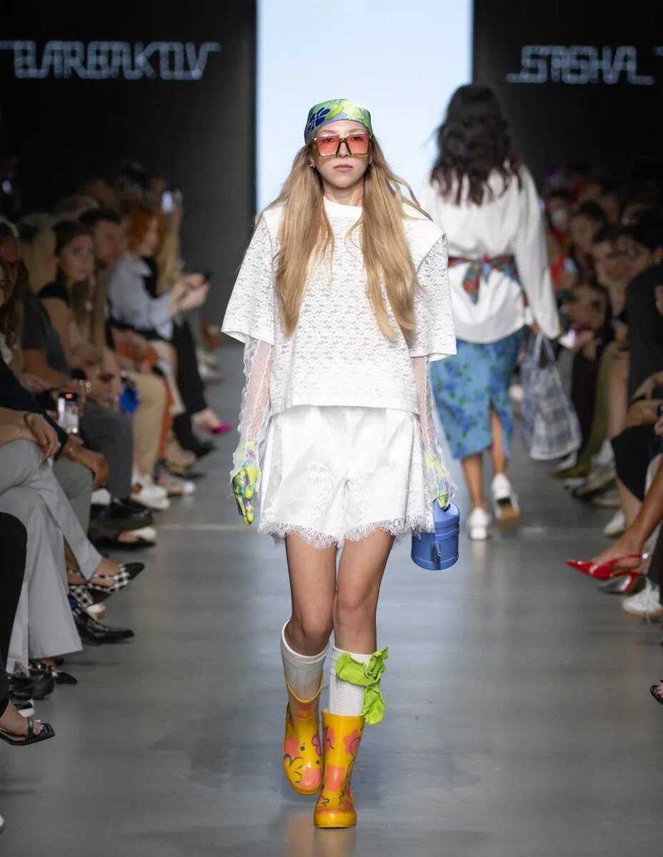 Коллекция бренда Sasha Barbakov (Москва) на подиуме Московской недели моды Бренд представил коллекцию «Цветут сады в душе», в основе которой лежат мотивы советских тканей с узорами. Дизайнер работал с полупрозрачными материалами и кружевом, создавая манишки-рубашки, топы с рюшами и костюмы. В коллекции использовались винтажные ткани и ретро-крой, цветочные принты на полупрозрачной основе. Особый акцент сделан на кружевных элементах и деталях, характерных для оригинальных выкроек прошлых десятилетий.