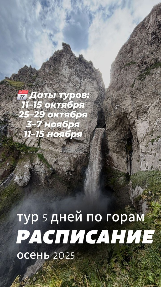 5 дней незабываемого приключения по Кавказу! Архыз – Домбай – Эльбрус – Джилы-Су – Чегемские водопады 🚀 📍 Маршрут: ✔ Архыз – совершим треккинг к водопадам. ✔ Домбай – поднимимся на канатной дороге и получим потрясающие виды, а вечером отдохнём в термальных источниках ✔ Джилы-Су – здесь мощнейшие водопады и самая красивая дорога России. ✔ Эльбрус - подъем к склонам самой высокой вершины Европы! ✔ Красивый труднодоступный перевал Актопрак, озеро Гижгит и Чегемские водопады. А еще здесь полетать на парапланах 🪂 ✨ Что включено: ✅ Проживание в уютных гостевых домах/отелях ✅ Трансферы на комфортном транспорте ✅ Питание (завтраки и пикник в день прилета) ✅ Джип-туры с опытным гидом ✅ Невероятные эмоции и новые друзья! 💰 Стоимость: 45000 📩 Пишите, звоните и мы вышлем презентацию 89851005392