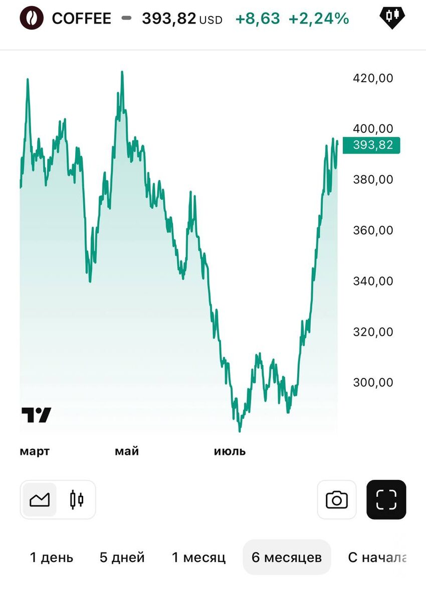исход предыдущей недели печален без лишних предисловий: мужчина умер кофейный фьючерс закрепился на высоком значении выяснять причины роста, конечно же, никто не собирается, просто вырастет стоимость зерна у обжарщиков поэтому, весьма вероятно, осенью стоит ждать поднятия цен на напитки в кофейнях страны впрочем, это уже совсем другая история