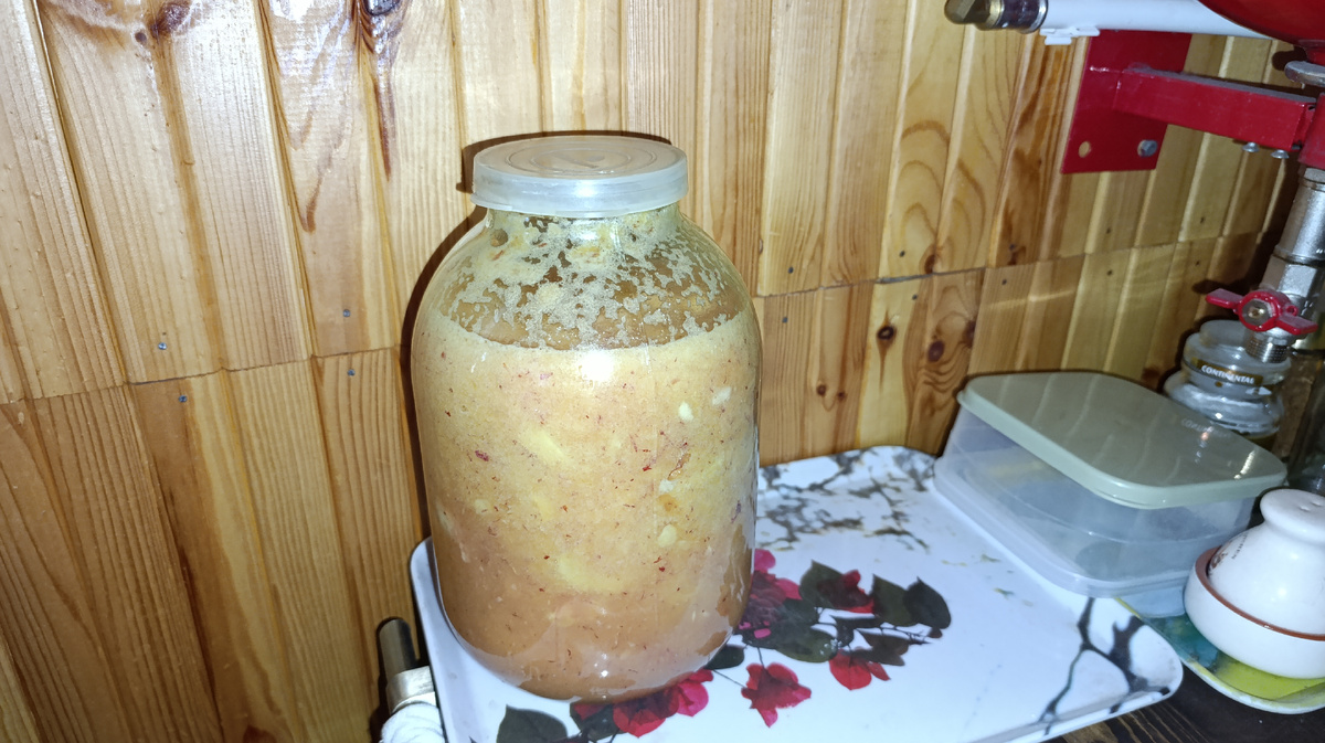 Плюсом забодяжила яблочный уксус. Делаю я его вот по этой схеме: Только тереть яблоки я не стала, пропустила их через соковыжималку, сложила в банку мезгу и залила соком. Мне кажется, так лучше, чем ждать, пока сок выделится сам. И уж точно проще. Надеюсь, всё получится. Когда-то я такой уксус делала, и он получался отменным, но это было давно, рецепт забыла. По-моему, он был таким же.