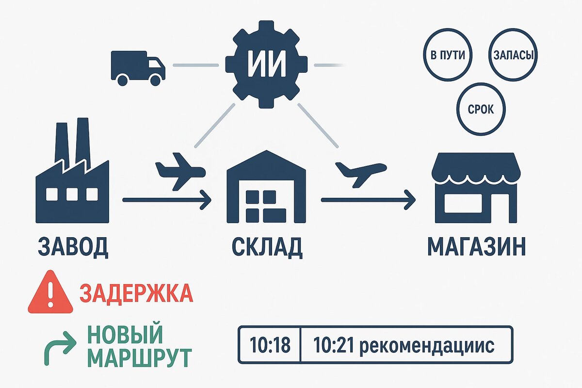 Логистика ускоряется и дорожает. Чтобы доставлять быстрее и дешевле, компании переходят к управлению на основе данных: искусственный интеллект и аналитика берут на себя прогнозы, маршруты, запасы и сервис. Уже на первых внедрениях бизнес видит снижение операционных затрат на 10–15% и ускорение доставки на 20–25% — за счёт точных прогнозов, динамического планирования и автоматизации складов. [AI-платформа анализирует цепочку поставок в реальном времени] Предиктивные модели оценивают продажи по SKU с учётом сезонности, промо, погоды и локальных событий. Система заранее подсказывает, где вырастет потребность, и перемещает товар ближе к точке спроса. Это снижает «out-of-stock», уменьшает излишки и освобождает оборотные средства. [Иллюстрация: график спроса по неделям и автоматические рекомендации закупок] ИИ пересчитывает маршруты «на лету» с учётом трафика, окон доставки, веса/объёма и погодных ограничений. Результат — меньше холостых пробегов, выше точность ETA и экономия топлива. Кейс