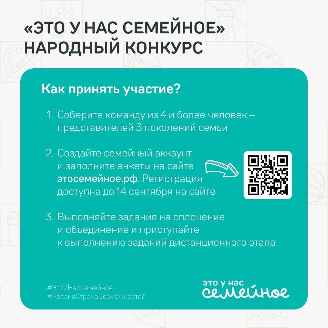«Это у нас семейное»! На конкурс зарегистрировались 159 471 участник это 47 140 семейных команд из 89 регионов России и 39 стран. Республика Башкортостан входит в 10-ку самых активных регионов по количеству заявок, ее представляют 1 475 семейных команд 4 716 участников. Регистрация доступна до 14 сентября на сайте этосемейное.рф Дистанционный этап второго сезона конкурса «Это у нас семейное» продлится до 1 октября. Завершится он викториной на знание истории и культуры России. В полуфинал проекта выйдут семьи, которые наберут больше всего баллов за дистанционный этап. В прошлом году в первом сезоне конкурса «Это у нас семейное» финалистами стали семь семейных команд из Башкортостана три семьи из Уфы, семьи из Стерлитамака, Бирска, Октябрьского и Учалов. Победила семья Гайнутдиновых-Файзуллиных из Уфы дедушка Рафис, папа Флорид, мама Лилия, сыновья Динияр, Вильдан и дочка Дилара. Пожелаем участникам из Башкортостана удачи и… https://uchaly102.ru/?p=97758