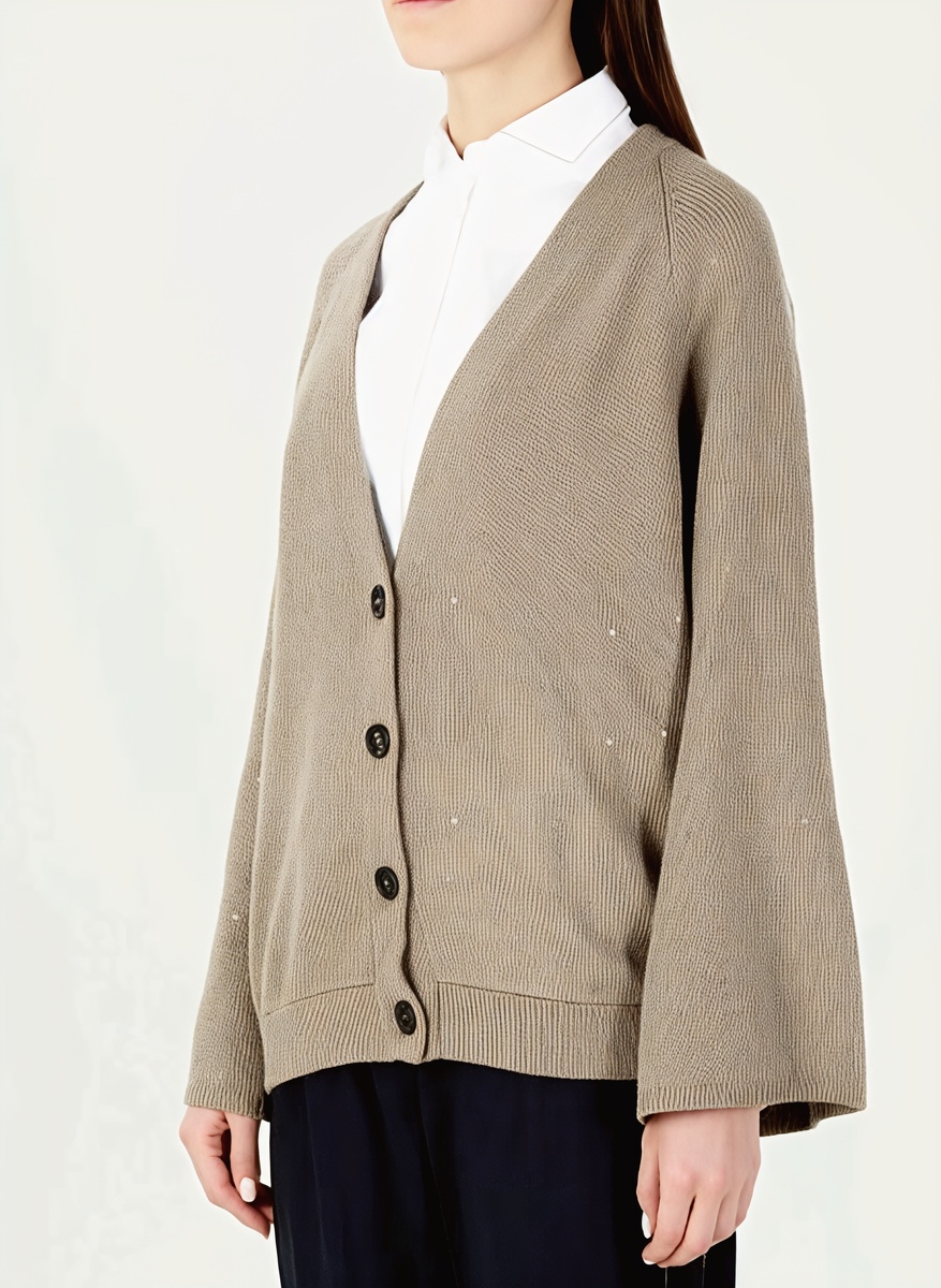 Кашемир остаётся королём осенних тканей. При покупке обращайте внимание на плотность – для кардиганов подходит тонкий кашемир, для свитеров лучше выбирать плотный. Качественный кашемир не скатывается и сохраняет форму годами.