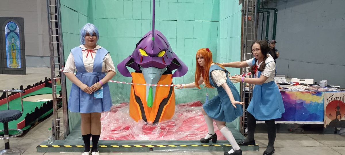 Когда с ограждением стало еще интереснее))) #Рей #Аска #Староста #Евангелион #Старкон
