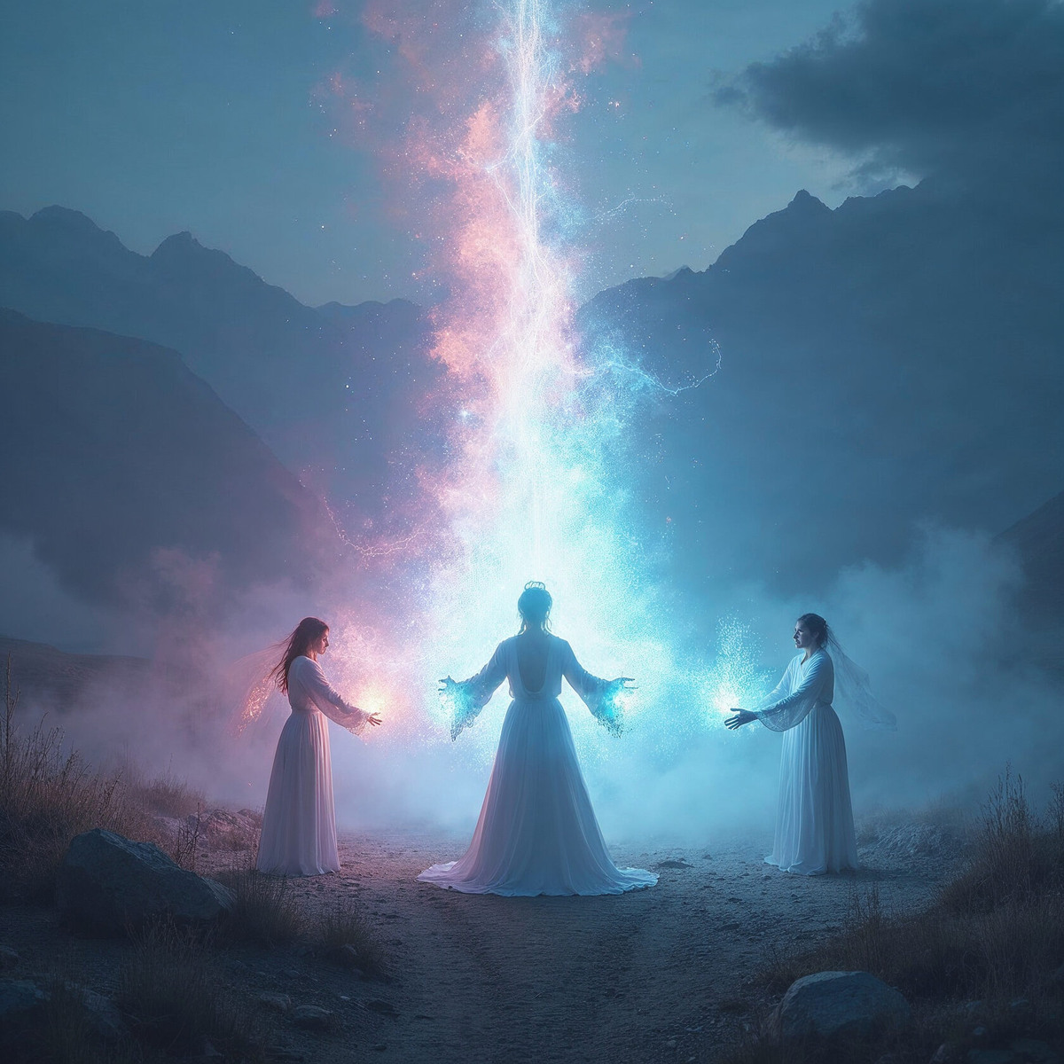 Не звук, не свет сначала – давление. Волна невидимой силы, сжавшая воздух, заставившая кочевников инстинктивно отшатнуться. Потом – свет. Ослепительный, чистый, небесный луч, вырвавшийся из центра их круга прямо в небо, пронзив облака. Он горел всеми цветами стихий: лазурью воды, изумрудом земли, золотом огня, серебром ветра – и чем-то еще, неописуемым, пятым.