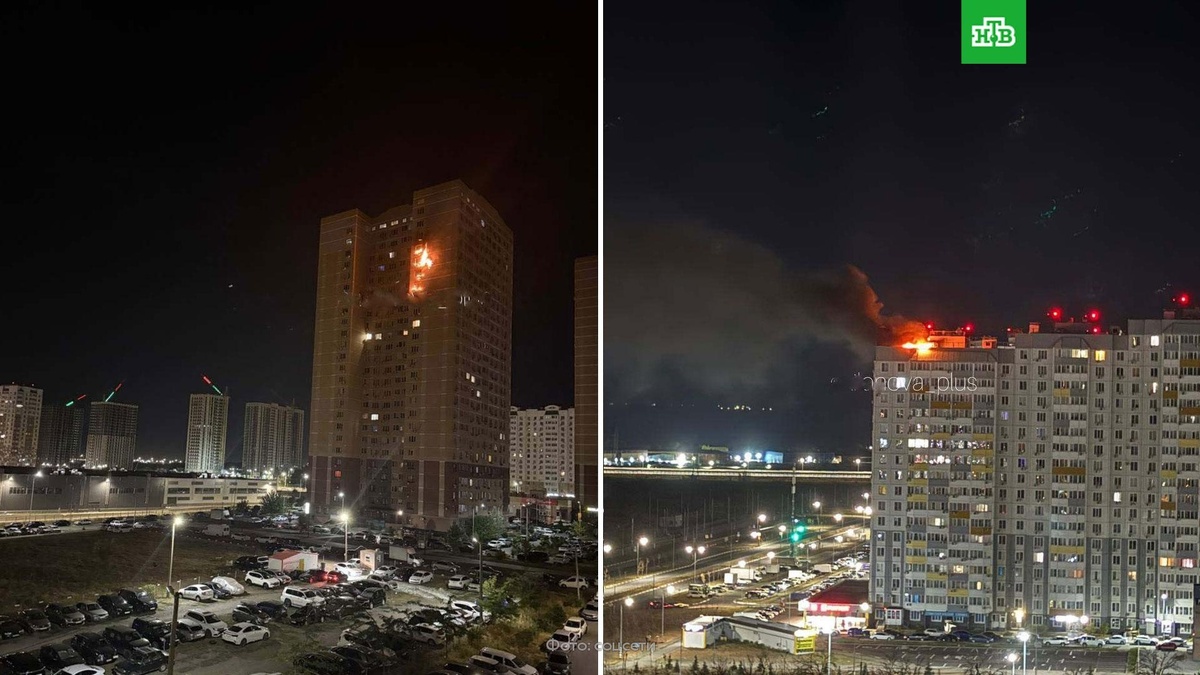 [ Смотреть видео на сайте НТВ ] В Левенцовском микрорайоне Ростова-на-Дону тушат пожары в многоэтажных жилых домах. Украинские дроны атаковали жилые дома в Ростове-на-Дону. Как сообщил врио губернатора региона Юрий Слюсарь, верхние этажи двух многоквартирных домов повреждены и загорелись на улицах Ткачёва и Еременко. По предварительным данным, пострадавших нет, добавил Слюсарь. Работают силы ПВО. На место происшествия выехали оперативно-спасательные службы. Информация о последствиях атак уточняется. Жители Левенцовского микрорайона в соцсетях поделились кадрами происходящего, на которых слышна работа сил ПВО, видны возгорания. Ранее губернатор Белгородской области Вячеслав Гладков сообщал, что украинские военные в понедельник обстреляли и атаковали дронами 16 населенных пунктов в приграничных районах региона. Женщина и девушка получили ранения. По материалам: https://t.me/vvgladkov/15694« target=»_blank»>Telegram-канал Юрия [ Смотреть видео на сайте НТВ ]